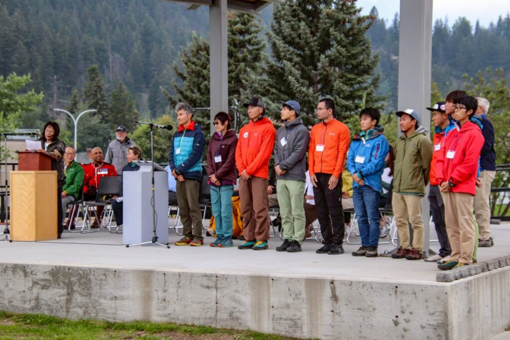 入山日前日には、麓の街ジャスパーにてカナダ山岳会の方々からアルバータ登頂100周年記念式典に招待していただき、皆でアルバータの登山史を振り返り、現地の方や75周年に登られた隊員の方ともご挨拶をさせていただきました。皆様からエールをもらい日本では想像もつかないくらいの人に祝われての門出となりました。