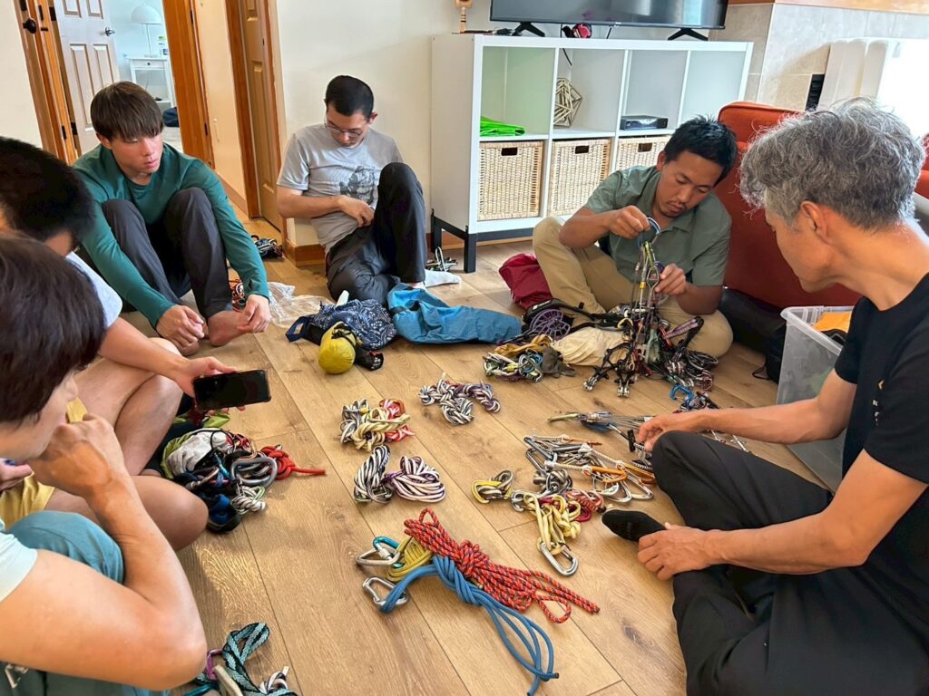 その夜、宿で食料や共同装備の重量分けを終え分担を決めていたらガス缶がないのに気づく!装備担当だった完全な私の所為で慌てて近くの閉店間際のホームセンターまで買いに行く。その間谷さんはカルガリーにいた安食さんにも念の為連絡し、ガス缶を用意してくださった。ありがとうございます。流れの読めない陳列と看板を早足で探し回りなんとか見つかった。無事に帰り、皆と谷さんとの話し合いをし、入山前夜の楽しいディナーを済ませた。