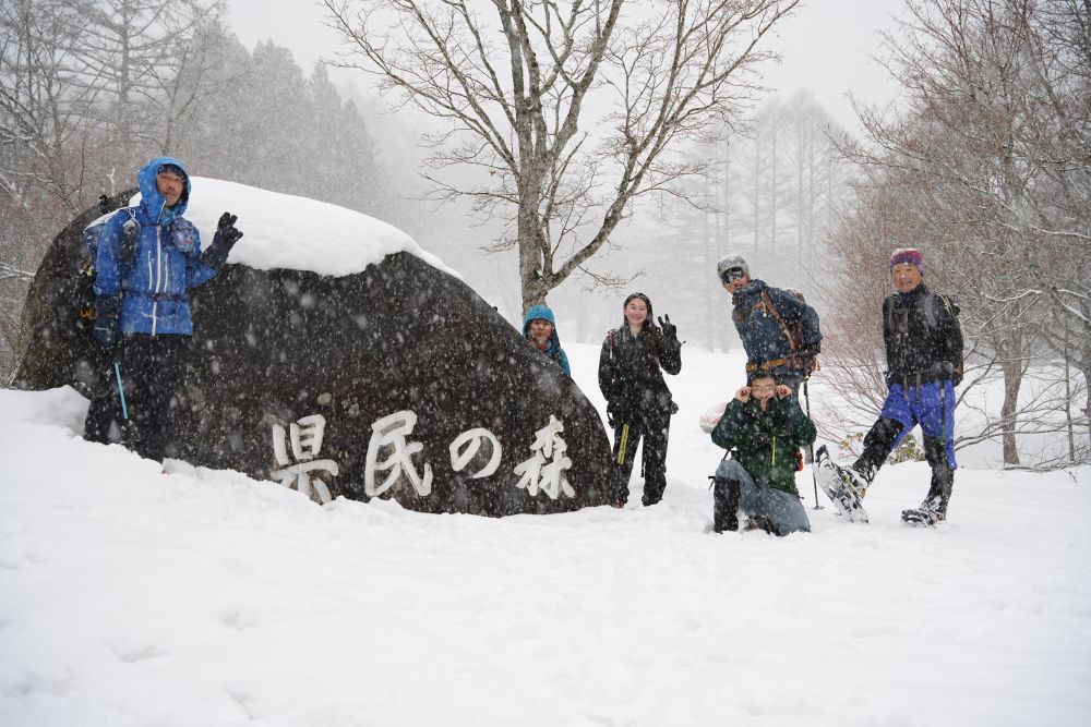 毛無山からは、登山道に沿って降らず、県民の森公園センターの方向を目指してストレートに降った。途中、いくつか小尾根を横切り、方角を修正しながら進んだ。誰かが、雪だるまを投げたことが発端で、降りながら雪だるまの投げ合いが始まった…。雪合戦の決着が着いたと同時に無事に登山道を見つけ県民の森公園センターに到着し今回の山行を終えた。