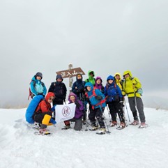 戸河内道の駅ですでに10cmほどの積雪。虫木峠付近から雪量が増え、国道191号から大規模林道に入ると、景色はすっかり雪山となる。 二軒小屋駐車場では除雪スタッフから「(完了が)いつになるかわからない」と言われ、30分様子を見たが、雪も激しくなったため十方山を断念。皆と相談して深入山へ変更したが、そこでも除雪作業により一時足止めとなる。 深入山のいこいの村駐車場は空いており、登山口の積雪は膝下ほど。トレースのおかげで歩きやすいものの、時折の突風でホワイトアウトに近い状態に。山頂は強風と寒さで食事ができる状況ではなく、集合写真を撮って早々に下山。その後、いこいの村の休憩所を貸していただき、ゆっくり昼食をとることができた。